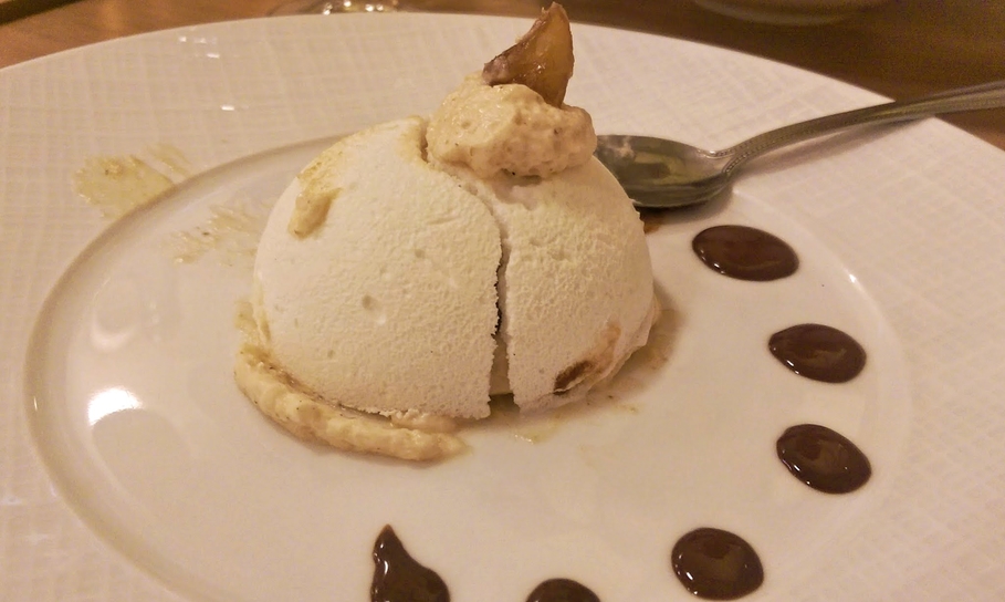 Ensuite, le filet de daurade à la plancha, étuvée de salsifis, bouillon mousseux à la badiane continue de ravir ma gourmandise et le dos de lieu jaune accompagné de paëlla façon risotto est admirablement cuisiné.