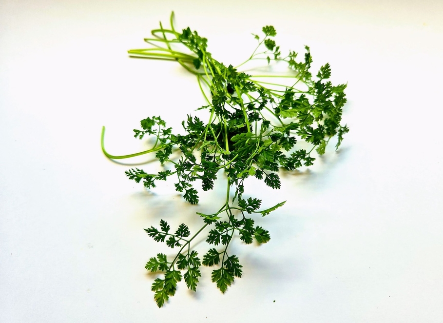 Le cerfeuil peut sembler une herbe un peu désuète qui n’a pourtant jamais disparu de nos plats, au moins dans les assortiments de fines herbes. Le cerfeuil commun ou cerfeuil des jardins est une plante herbacée, probablement originaire de Russie, cultivée comme plante condimentaire pour ses feuilles au goût légèrement anisé. On parle aussi de cerfeuil cultivé, de cerfeuil des jardins ou d’herbe aiguillée.