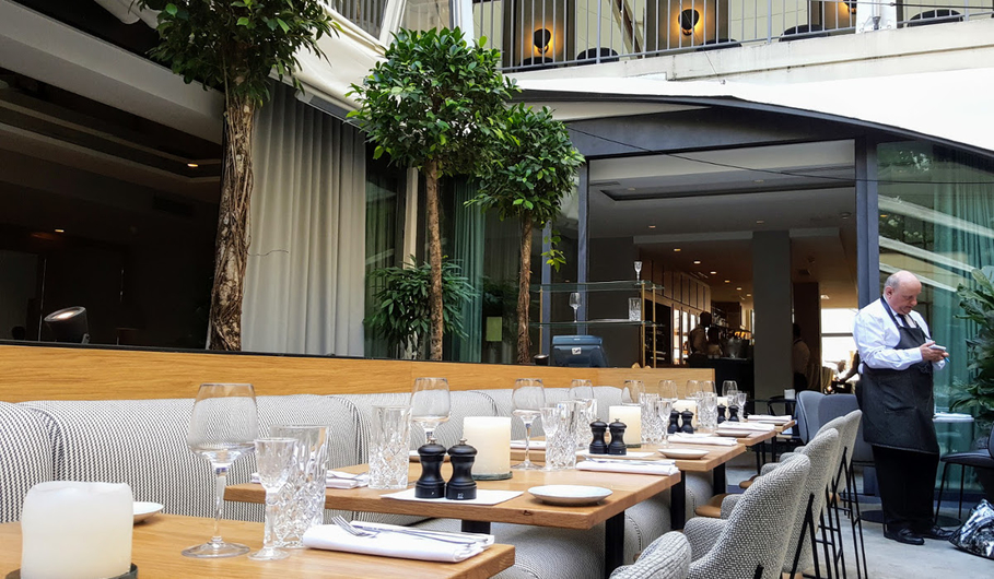 Le Flora Danica commence par une jolie terrasse sur le trottoir des Champs-Élysées, en prolongement du bar de la brasserie. Mais, en vous avançant, vous pouvez demander une table dans un magnifique espace à ciel ouvert au beaux jours, et bâché en hiver.