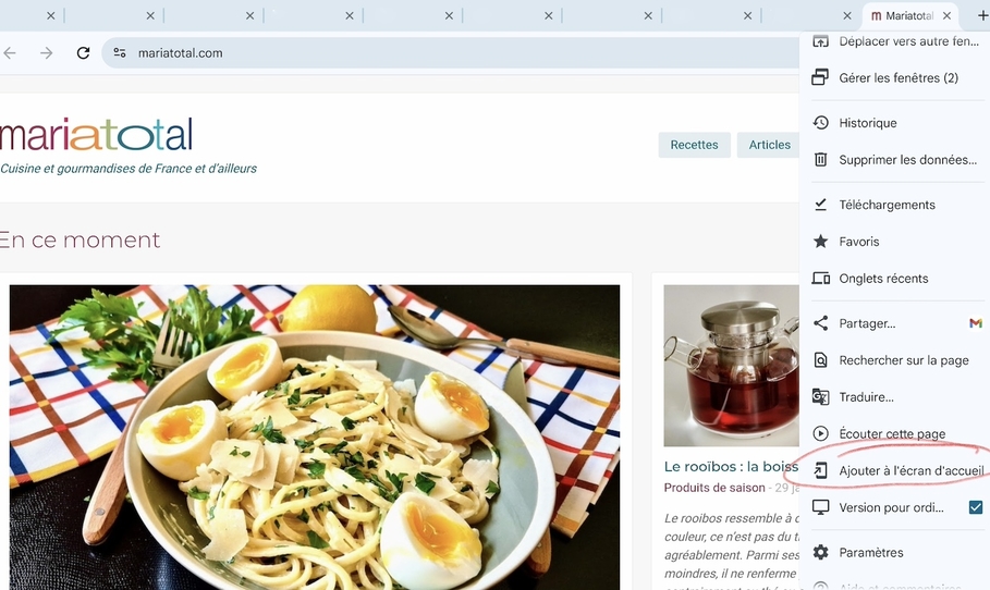 Faute de véritable application Mariatotal, il vous suffit d’ouvrir le site via Google. Son format s’adapte aussi bien à votre ordinateur qu’à votre tablette ou à votre téléphone mobile. Puis, pour ceux qui n’avaient pas déjà trouvé commencer procéder, faites défiler le menu, en haut, à droite de votre écran, et cliquez sur “ajouter à l’écran d’accueil”.