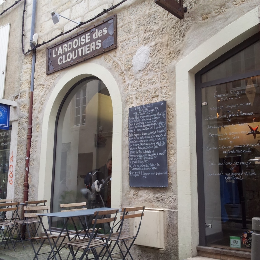 L’autre quartier des restaurants, à La Rochelle, se situe autour du marché central. D’un côté, la rue Thiers, de l’autre, la rue des Bonnes Femmes et la rue des Cloutiers. Vous y découvrirez des trésors, dont cette Ardoise des Cloutiers.