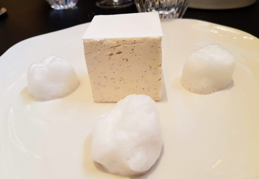 Last but not least, le mille-feuille blanc, dessert signature d’Anne-Sophie Pic, termine ce repas de fête en beauté et tout en légèreté et subtilité. Il s’agit d’une crème légère à la vanille de Tahiti, avec une fine gelée au Jasmin et une émulsion au poivre Voatsipérifery. À ne manquer sous aucun prétexte.