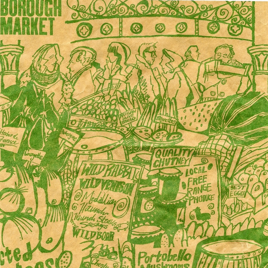 À l’enseigne très visible, “Le marché du quartier”, une foule attend patiemment de se faire servir des sandwiches au confit de canard. Derrière cet étal sont exposés toutes sortes de conserves du sud-ouest à base de confit et de foie gras. Le symbole du terroir français chez la “perfide Albion”.