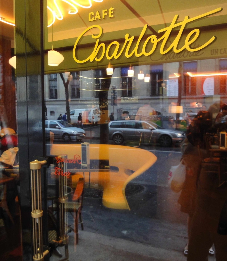 Au Café “Charlotte”, le mobilier est authentiquement années soixante, et même signés Charlotte Perriand pour certains.