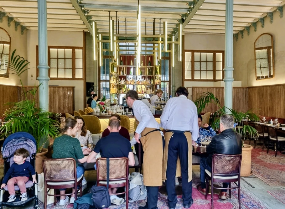 Le Camondo, abrité par l’ancienne remise aux voitures de l’hôtel particulier, en a conservé le plafond à caissons et ses colonnes métalliques qui structurent l’espace. Elle s’ouvre sur une cour pavée loin du bruit, comme un jardin secret. Un lieu chaleureux, une ambiance feutrée, un mélange de style et de matières, l’esprit d’un jardin d’hiver, presque comme une adresse confidentielle.