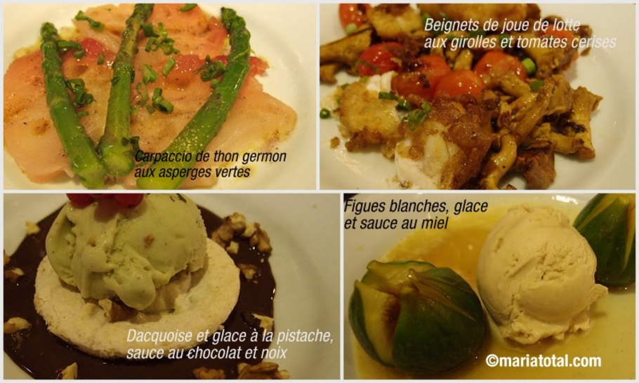 Étudiez l’ardoise… Tout vous tente. Mais il faut bien choisir. Un carpaccio de thon germon, agrémenté d’asperges vertes, arrosé d’un filet d’huile d’olives et parsemé de ciboule: un pur régal accompagné d’un pain de seigle au parfum inégalé (dommage que le boulanger ne fournisse que les professionnels, paraît-il).