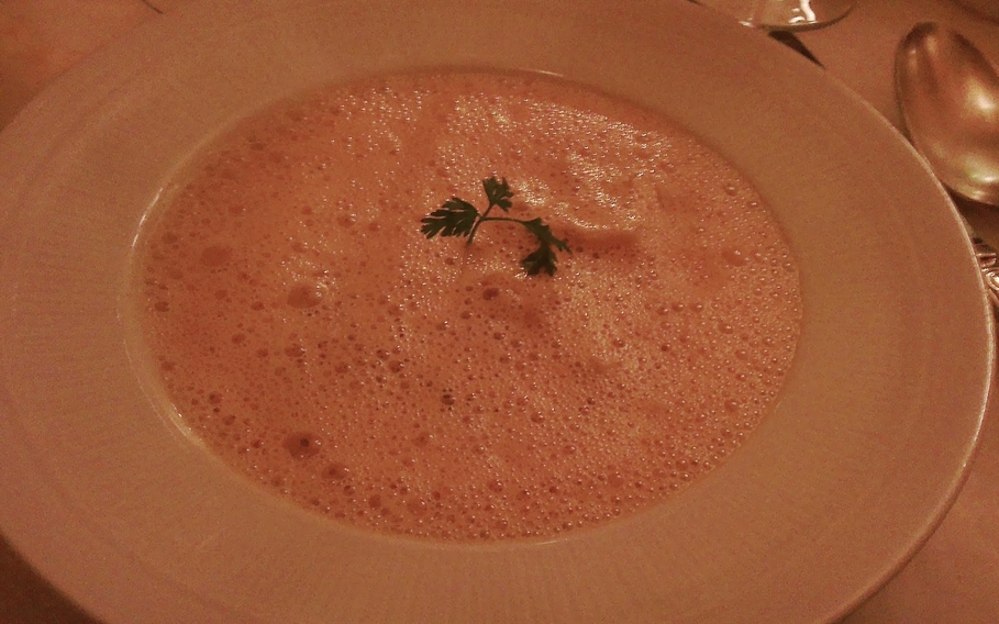 L’établissement propose un menu-carte à 39 euros pour une entrée, un plat et un dessert, sans aucun supplément. À quatre, nous nous répartissons la dégustation. L’œuf moelleux, champignons de Paris poêlés aux noisettes, sauce vin jaune est généreux avec une cuisson parfaite. Les ravioles de langoustines, céleri rave à la cannelle, crème de langoustines à la fève tonka se révèlent d’une finesse rare, bien que la noix de céleri dans la crème de langoustine couvrent la cannelle et la fève tonka annoncés. L’ensemble est tout de même irrésistible. Quant au carpaccio de Saint-Jacques au yuzu, juste acidulé et citronné comme il faut constitue une entrée raffinée et légère.