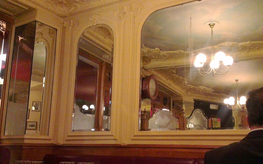 L’accueil, lors de la réservation, est engageant : quatre jours auparavant, la jeune personne au téléphone se met en quatre pour refaire son plan de salle pour vous satisfaire. Le jour dit, c’est confirmé, l’accueil et le service sont souriants et détendus. Dans ce bistro authentiquement Art nouveau, avec ses demi-cloisons surmontées de verre sablé aux motifs rococo, le marbre des tables est laissé nu et la lumière plutôt faible, à l’ancienne.