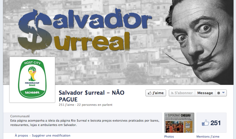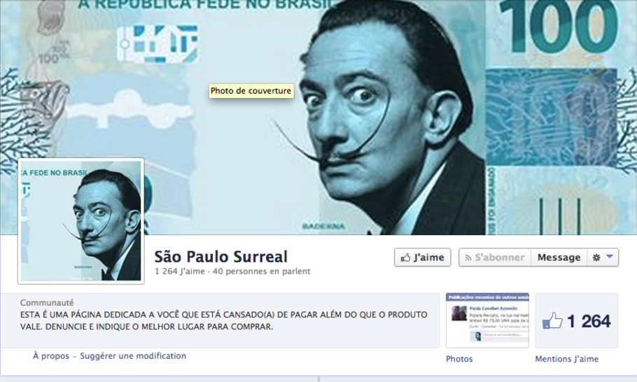 Un jeune designer, Flavio Soares, a donc imaginé, avec deux de ses amis, une page Facebook appelée “Rio Surreal”, le préfixe “sur” pour souligner la surenchère du “real”, la monnaie brésilienne. Avec, bien sûr, un calembour avec l’aspect “surréel” des prix et les surréalistes. D’où l’idée d’illustrer cette page de facsimilés de reals à l’effigie de Salvador Dali, l’artiste figurant l’emblème du mouvement.