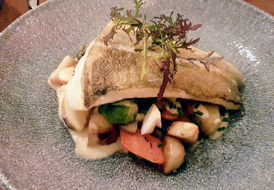 Le poisson du marché était un dos de cabillaud poêlé posé sur des cubes de légumes de saison, poêlés eux aussi : carottes, topinambours, choux-Bruxelles. Cuit à point, le poisson restait moelleux et goûteux, tandis que les légumes, encore à peine croquants, livraient encore tous les parfums.