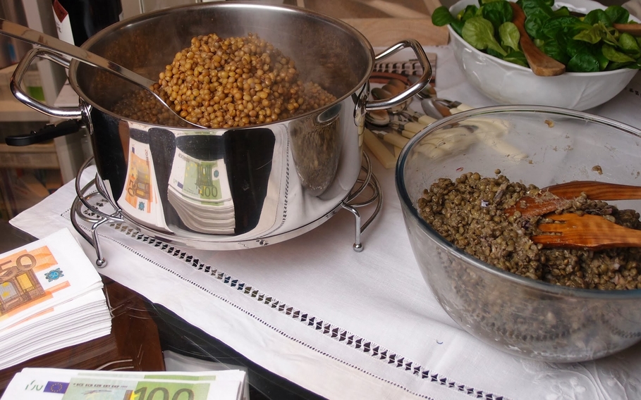 Un ami d’origine italienne nous a initiés à cette tradition qui doit nous assurer prospérité et bonheur pour toute l’année qui commence. En Italie, pour le Nouvel An, les lentilles sont en effet présentes sur toutes les tables. Une superstition qui veut que l’on offre à la fin de l’année une bourse pleine de lentilles en faisant le vœu que chaque graine se transforme en pièce de monnaie.