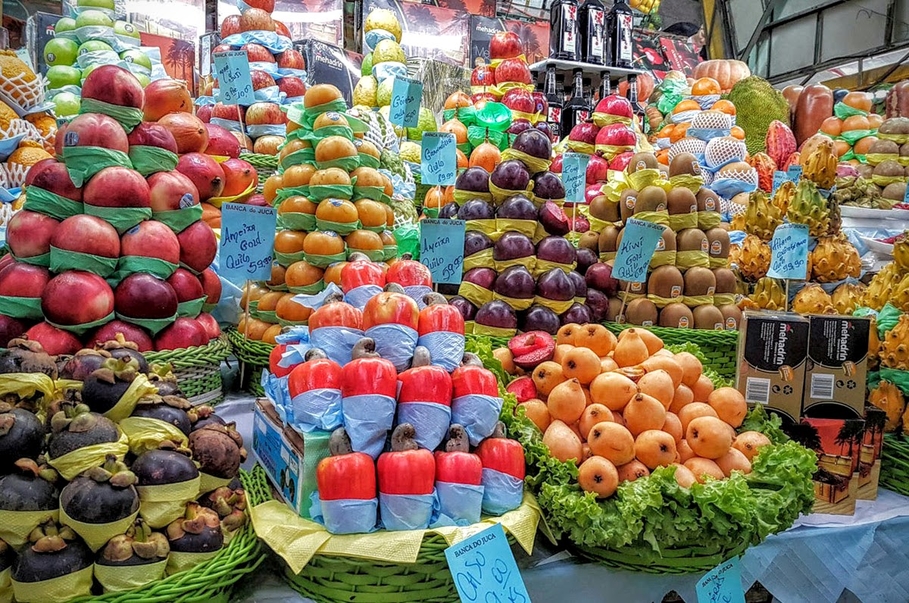 Construit entre 1928 et 1932, cet entrepôt de gros et détail de gros et de détail, ce Mercado Central, à l’époque, était déjà spécialisé dans les fruits, légumes, céréales, viande, poissons, épices et autres produits alimentaires. Situé dans le vieux centre de São Paulo, près de la rivière Tamanduateí, le bâtiment mesure environ 12 600 mètres carrés. 350 tonnes d’aliments transitent chaque jour par ce marché comptant près de 300 étals en tous genres.