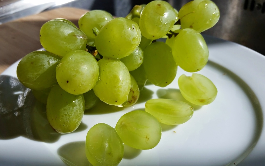 Fin août-début septembre, c’est la saison des figues et ses raisins. Une douceur qui régale nos papilles illuminées par la lumière rasante de la fin de l’été. Je me damnerais pour des figues fraîches, mais j’ai également une tendresse particulière pour le raisin. Sans être une grande spécialiste, voilà des années que je jette mon dévolu sur le Chasselas (AOC) de Moissac et aussi le muscat, bien sûr. J’évite l’Italia, à gros grains et à peau trop épaisse, que l’on trouve à toutes les saisons, même à Noël.