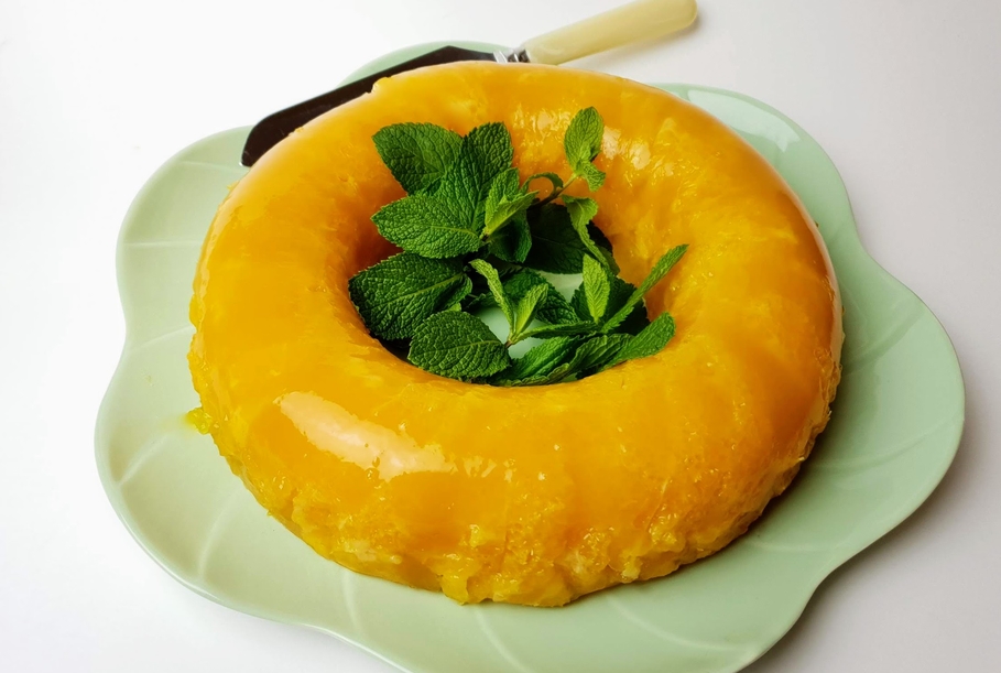• Aspic d’oranges De belles oranges amalgamées les unes aux autres grâce à une gelée. La recette mentionne du sucre, facile à retirer, du moment que les oranges sont bonnes.