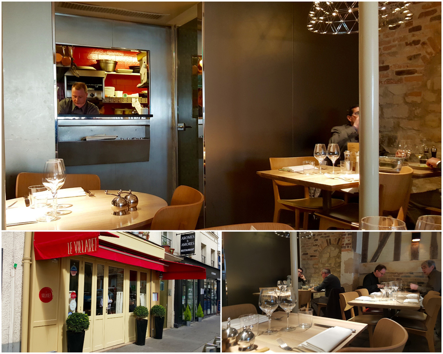 Le Villaret fait face à la boulangerie Chambelland, dans une rue discrète donnant dans la rue Oberkampf, dans le XIe arrondissement de Paris. Le décor, refait en 2013, sobre et plutôt dépouillé, a gardé ses murs et sa pierre apparente, ainsi que son zinc. Mais les tables et les chaises en bois, très confortables, l’armoire cave, les lumières et la cuisine, en fond de salle, sont résolument contemporaines.
