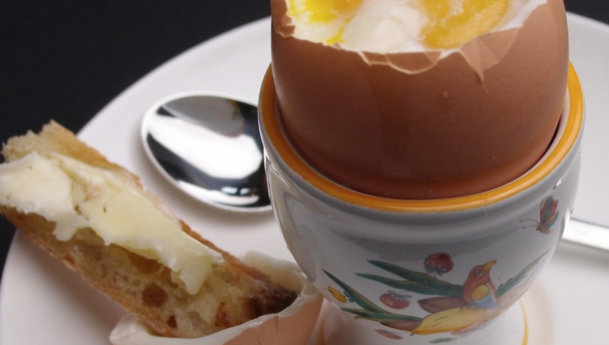 – des tranches de pain que chacun beurre et découpe en lamelles –, à tremper dans le jaune d’œuf.