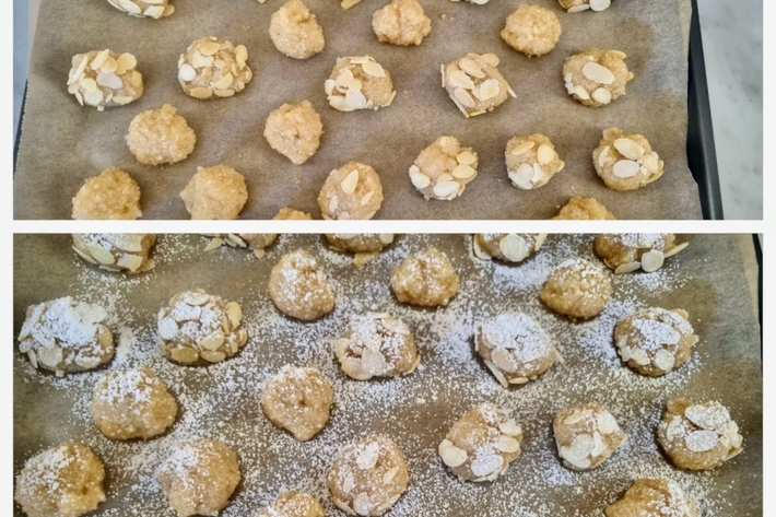Si les boulettes aux amandes sont trop molles, disposez-les directement sur le papier cuisson et saupoudrez-les d’amandes effilées sans les rouler dedans.