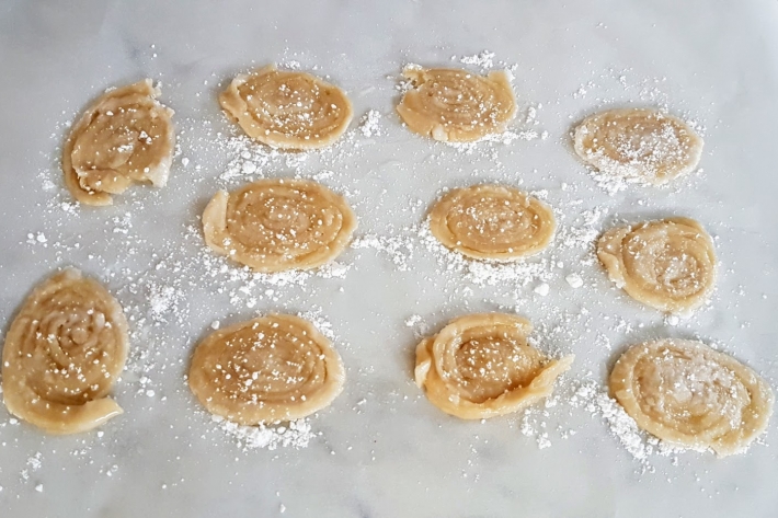 Découpez la pâte en rondelles de 1 centimètre d’épaisseur.
