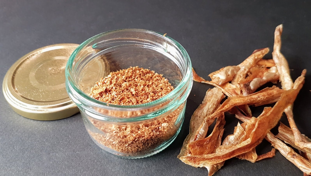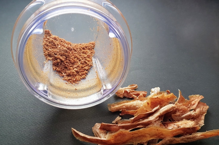 Pulvérisez les épluchures séchées au mixer ou au mini-robot.