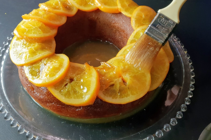 Avec un pinceau, nappez le dessus du baba avec ce mélange.