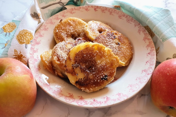 Un dessert d’enfance, non ? Depuis que j’ai découvert que la pâte à beignets pouvait se faire très vite avec peu d’ingrédients, juste de la farine et de l’eau ou, mieux, de l’eau gazeuse ou de la bière, je ne m’arrête plus. D’ailleurs, j’ai eu l’esprit de l’escalier et je pense que le cidre aurait été encore plus approprié. Et je ne vois toujours pas l’utilité d’une friteuse.