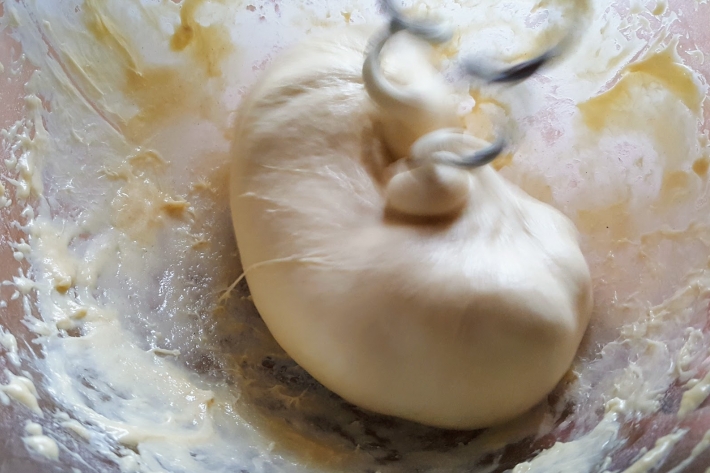 Travaillez à la main, dans un robot ou avec les crochets du batteur électrique, jusqu’à ce que les bords se détachent du saladier.