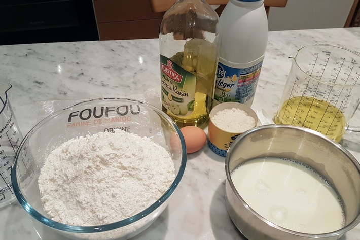 “La farine (terme employé au Brésil) de manioc se vend sous le nom de “farine” ou plutôt “fécule de manioc” dans les supérettes de produits africains et sous le nom de “fécule de tapioca” dans les supermarchés asiatiques. Notez qu’il s’agit vraiment d’une poudre blanche très fine.”