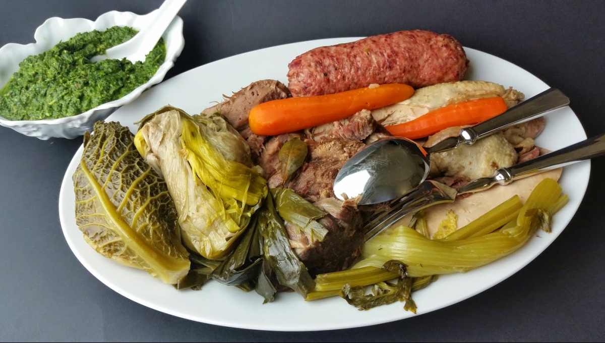 Littéralement, “bouilli mélangé”. Il y a vraiment de tout : du bœuf, de la langue de bœuf ou de veau, de la saucisse et une poule ou du poulet. Évidemment, c’est très long. Mais le bollito misto est destiné à une grande tablée et se fait la veille, même l’avant-veille, pour être tranquille (au plus tard, le matin pour le soir). Bien sûr, vous pouvez vous passer de certains ingrédients selon le nombre de vos convives et ce que vous trouvez à votre marché.