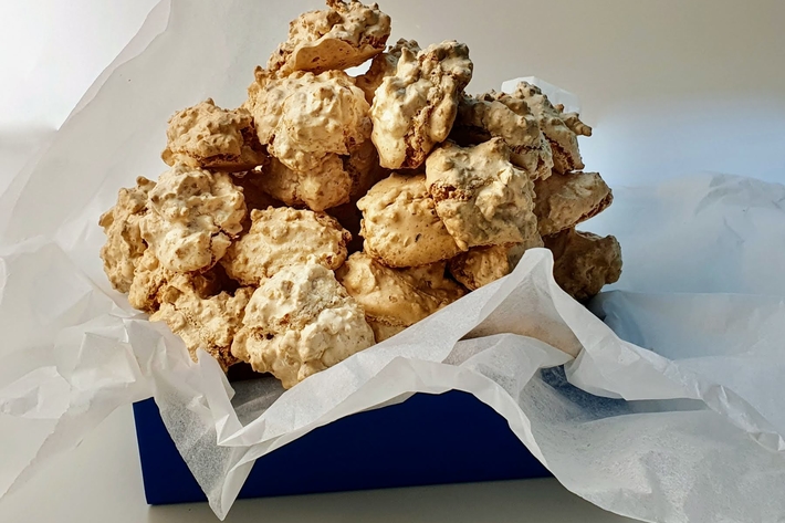 Gardez ces fruits secs torréfiés et concassés jusqu’au moment de cuisiner ces brutti ma buoni.