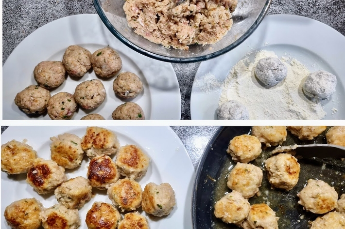 En réalité, ces proportions vous donneront le double du nombre de boulettes nécessaires. Après cuisson, vous les garderez au congélateur pour une préparation ultérieure.