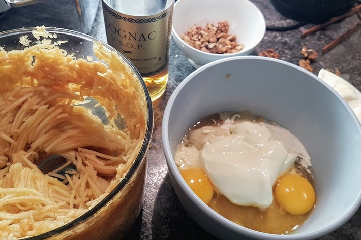 Incorporez alors les pommes râpées.