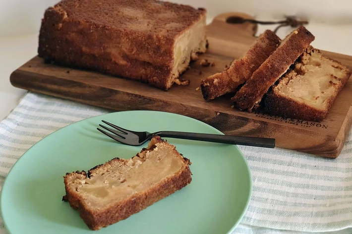 “Le cake était aussi destiné à une petite fille de 15 mois, alors j’ai remplacé le rhum par une cuillerée à café de vanille liquide pour la cuisson et proposé aux adultes de se servir individuellement du rhum par la suite. Sans en abuser !”