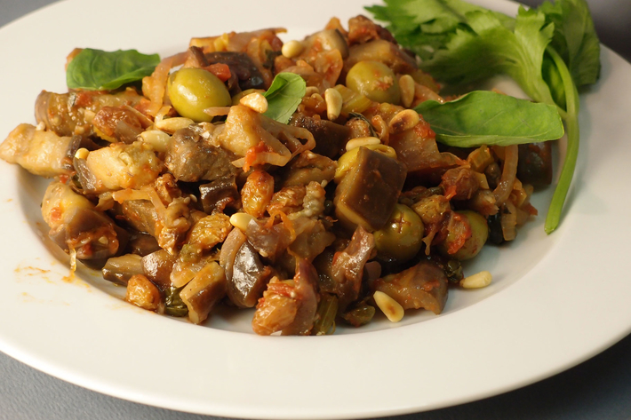 Un grand classique de la cuisine sicilienne… Une ratatouille d’aubergines, légèrement aigre-douce qui se mange froide ou tiède. Elle accompagne très souvent, et délicieusement, le thon.