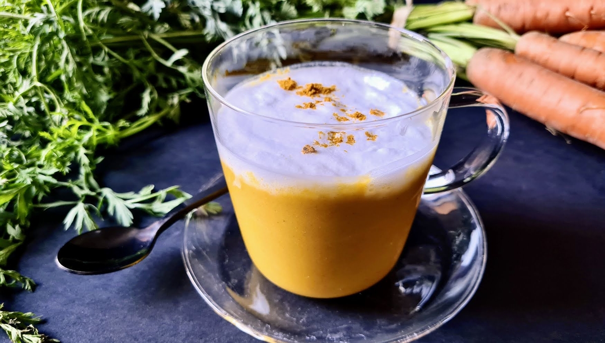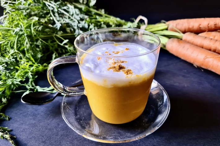Carotte, curry et lait de coco se marient toujours bien ensemble. Ce velouté glacé vous ravira par temps chaud, mais se déguste aussi tiède. Pour donner un petit côté cappuccino, surmontez-le de mousse de lait de coco. Merci à Anne, du blog On dîne chez Nanou, pour cette astucieuse suggestion.