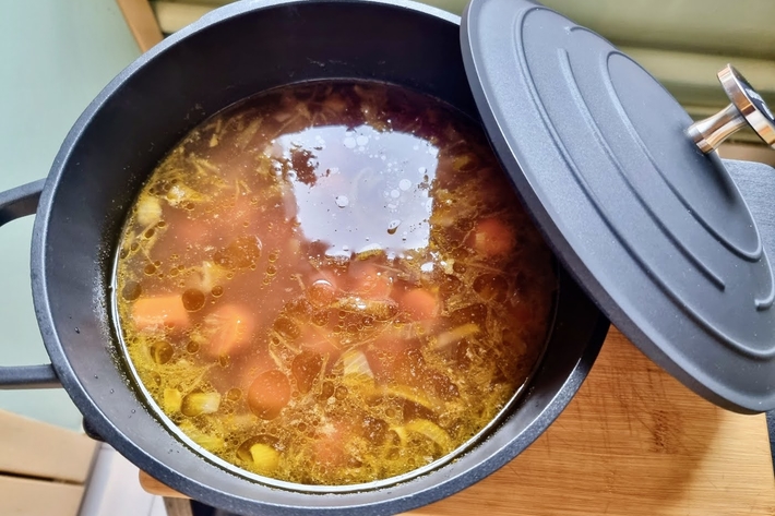 Portez à ébullition, couvrez, baissez le feu et laissez mijoter 30 minutes.