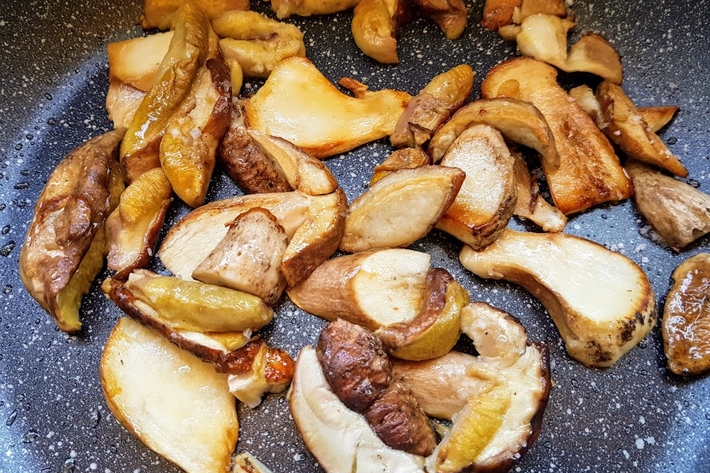 Saupoudrez de fleur de sel, poivrez et réservez les cèpes dans le plat de service chaud.
