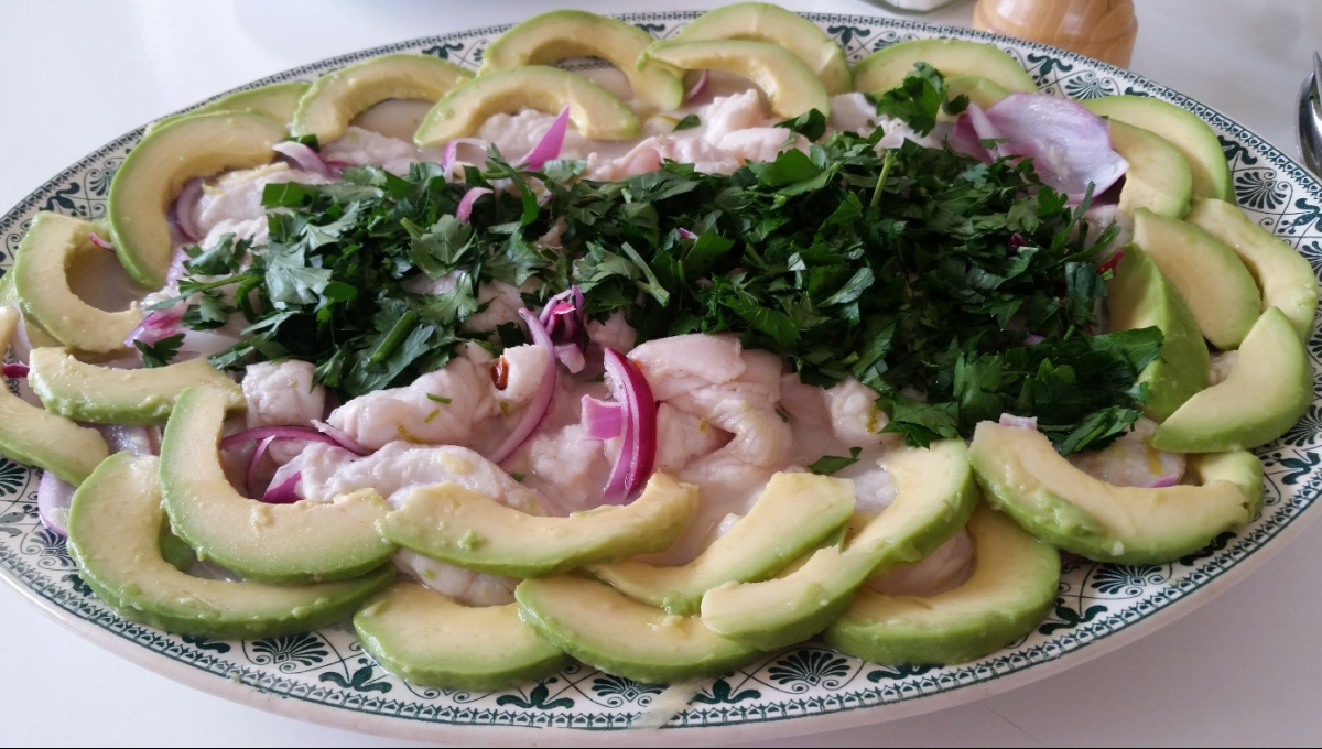 “Le ceviche est un plat de poissons crus marinés dans le jus de citron que l’on trouve sur le côte pacifique de l’Amérique latine. En fait, le poisson cuit, très vite, dans le citron.”