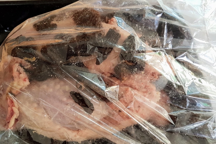Glissez-le dans le sac de cuisson avec le reste des morilles. Fermez et découpez 3 entailles sur le dessus du sac.