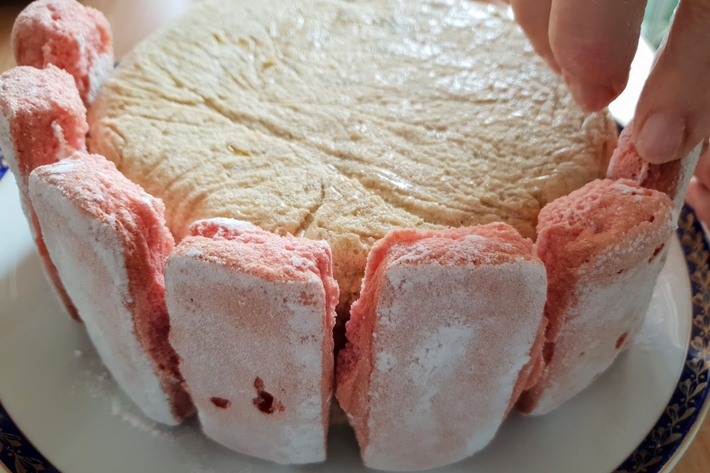 Si vous avez un joli ruban, utilisez-le pour tenir les biscuits de Reims autour de la charlotte.