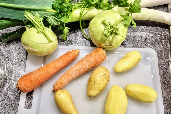 Notez que j’ai choisi les légumes qui me plaisaient : ainsi, à défaut de chou rave, prenez des navets, par exemple, mais cuisez-les moins longtemps. En matière de plat irlandais, seules les pommes de terre sont indispensables.