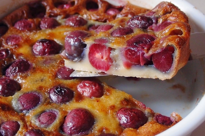 “Faites deux clafoutis en même temps et congelez-en un pour l’hiver. Évidemment, en décongelant, le clafoutis perd de l’eau. Épongez avec du papier absorbant et passez dans le four très chaud et éteint avant de servir.”