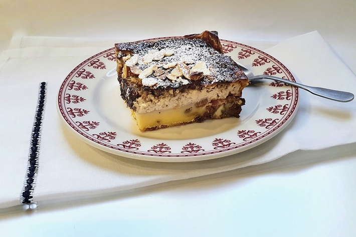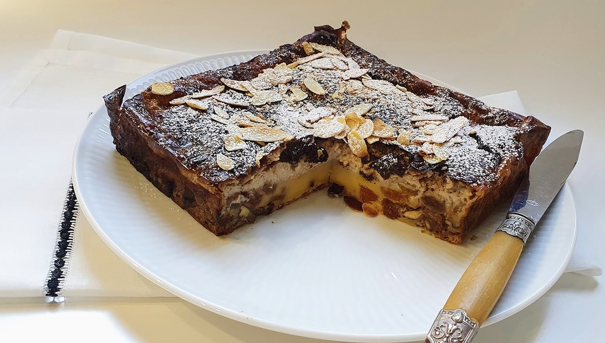 Ce clafoutis vient de Mamina, qui le tient de Jojo, qui le tient de… Bref, c’est une déclinaison très astucieuse du clafoutis avec des fruits secs engrangés pour l’hibernation, voire le confinement… Il suffisait d’y penser. Vous pouvez y mettre ceux que vous préférez : pruneaux, figues… et les faire macérer dans votre alcool de prédilection : rhum, armagnac, Cointreau, Grand Marnier (moi, c’est le cognac, un peu chauvine), etc., et ajouter des amandes, noix ou noisettes hachées. Ou pas. Pour le reste, j’ai panaché la recette de Mamina et celle de mon clafoutis habituel.