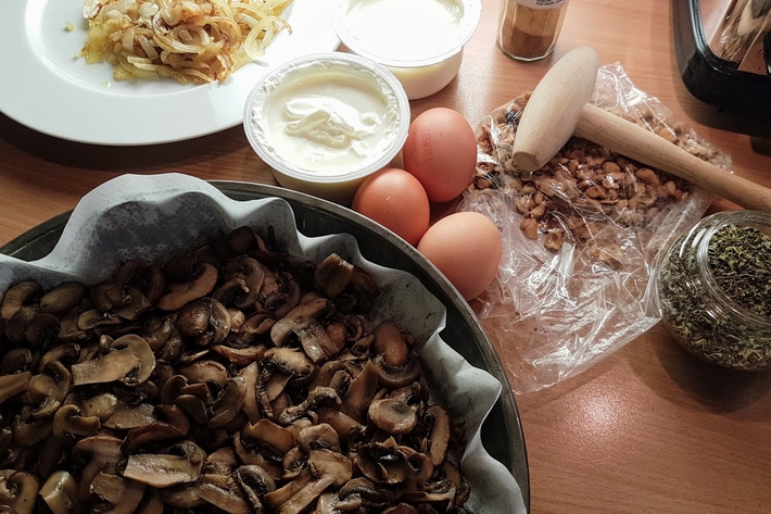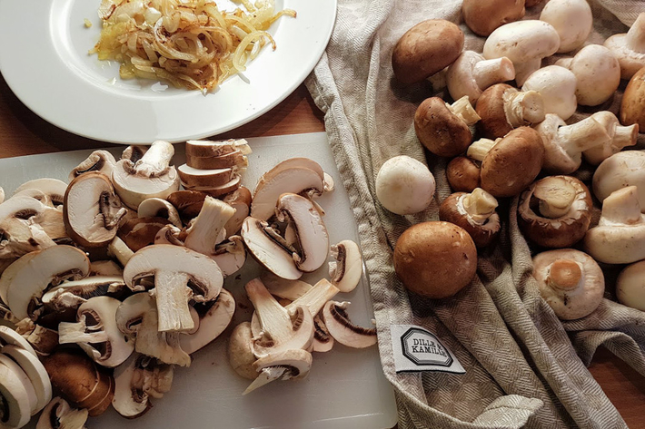 Émincez les champignons et faites-les revenir dans la poêle à la place de l’oignon. Ajoutez éventuellement un filet d’huile.