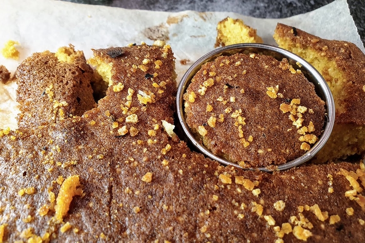 “La basboussa est une pâtisserie orientale (“hrissa” dans le Maghreb), grecque ou turque (“revani”) et libanaise (“namoura”). En Égypte, il contient parfois de la poudre d’amande et/ou des noisettes, au Liban, de la poudre de pistache ou des pistaches écrasées, de la noix de coco ou de la peau d’orange confite, comme ici. On peut l’aromatiser de sirop à la cannelle, aux clous de girofle ou à l’eau de fleur d’oranger.”
