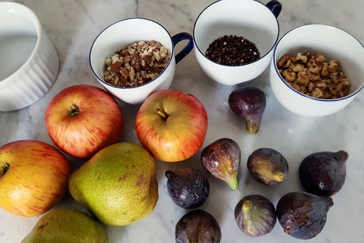 “Vous pouvez remplacer les figues par des prunes, par exemple. Et, plus tard dans la saison, quand les figues (ou les prunes) se font plus rares, vous pouvez changer de fruit. Pourquoi pas deux bananes en rondelles ?”