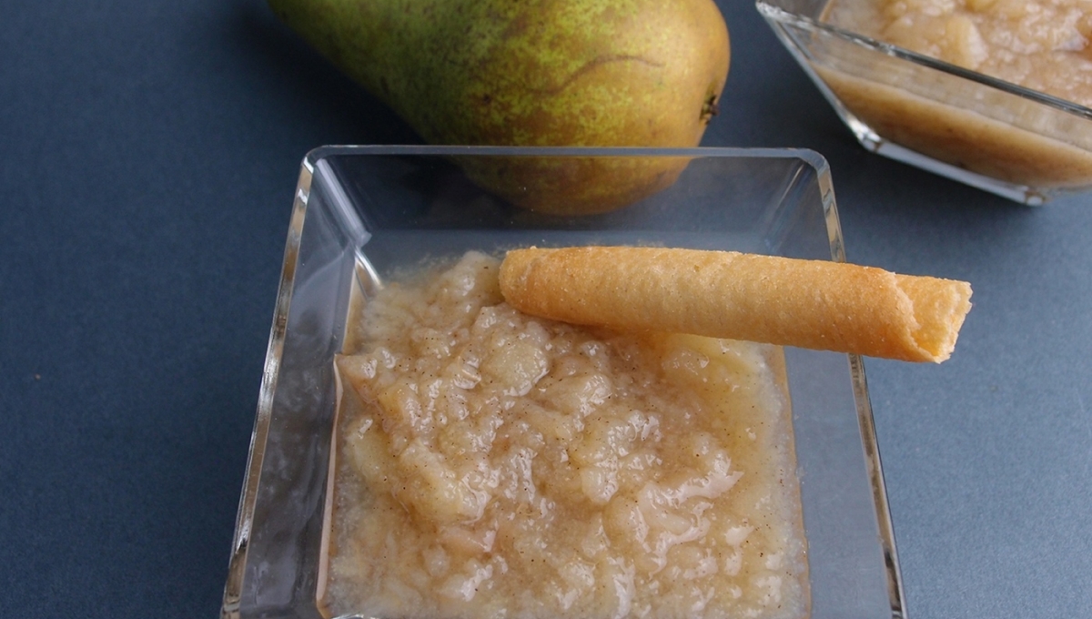 La poire se suffit sans ajouter de sucre ni d’eau. D’une finesse incomparable sous la langue, la compote de poires serait excellente contre les calculs rénaux.