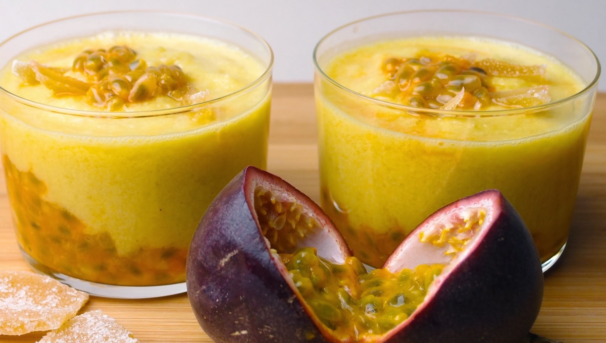 “Vous pouvez inverser l’ordre et déposer le gingembre dans le fond des coupelles et les fruits de la passion en décor sur le dessus, bien sûr.”