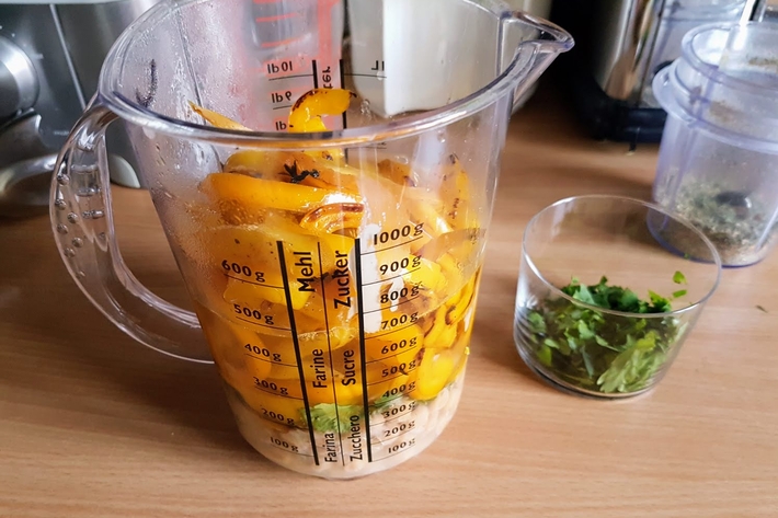 Ajoutez l’eau fraîche et mixez à nouveau.