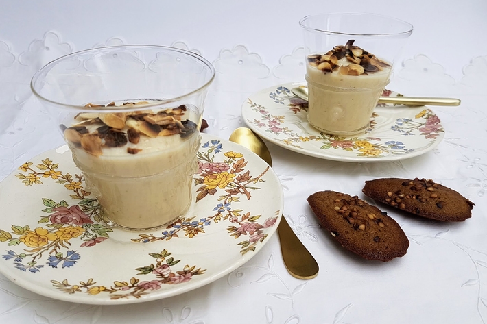 Un dessert ultra-simple, avec des ingrédients faciles à avoir dans toutes les supérettes de quartier et vite fait pour amateurs d’amandes (moi, M’dame !). Il faut seulement avoir le temps de laisser rafraîchir.