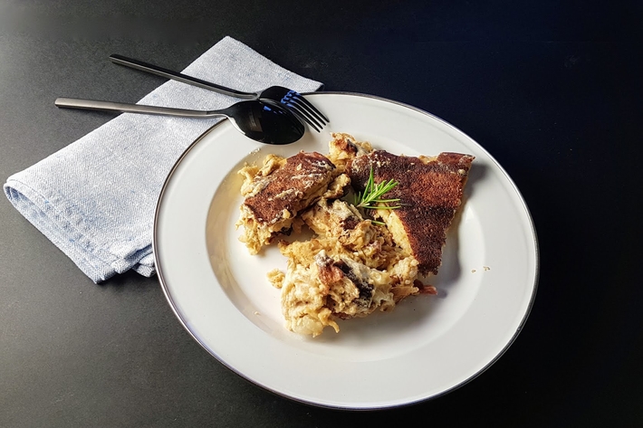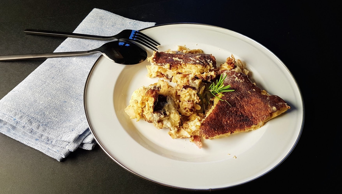 Toujours issue du site autrichien Gusto.at, voici une autre crêpe enrichie d’oignons et de lardons, et soufflée grâce aux blancs en neige incorporés dedans, puis déchiquetée comme une omelette ratée. Et c’est délicieux…. C’est tout simple et ça plaît en général à tout le monde.